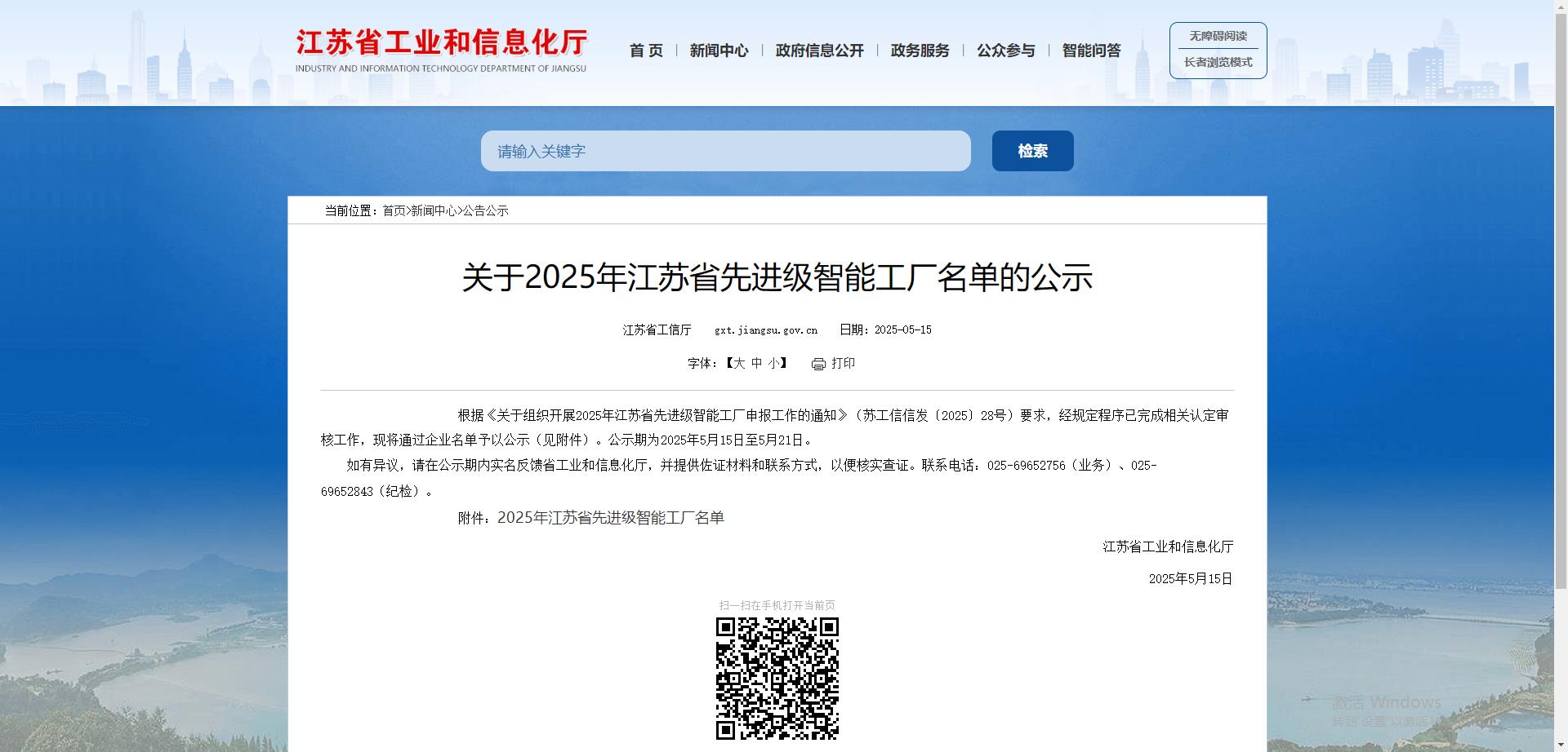 近日,江蘇工業和信息化廳正式公示《2025年江蘇省先進級智能工廠名單》,我司先鋒智能憑借卓越的智能制造水平,技術創新能力,成功獲評“江蘇省先進級智能工廠”稱號。這一榮譽不僅是對先鋒智能車間工廠數字化轉型成果的充分認可,更是先鋒智能“數智強企”在產品生產鏈落地見效的生動實踐。