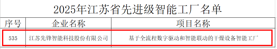 此次獲評,標志著先鋒在智能化轉型道路上取得了重要的階段性成果。先鋒將以此次獲評為契機,深化智能制造的產業布局,完善智能工廠建設體系,賦能企業乃至干燥行業的高質量發展。